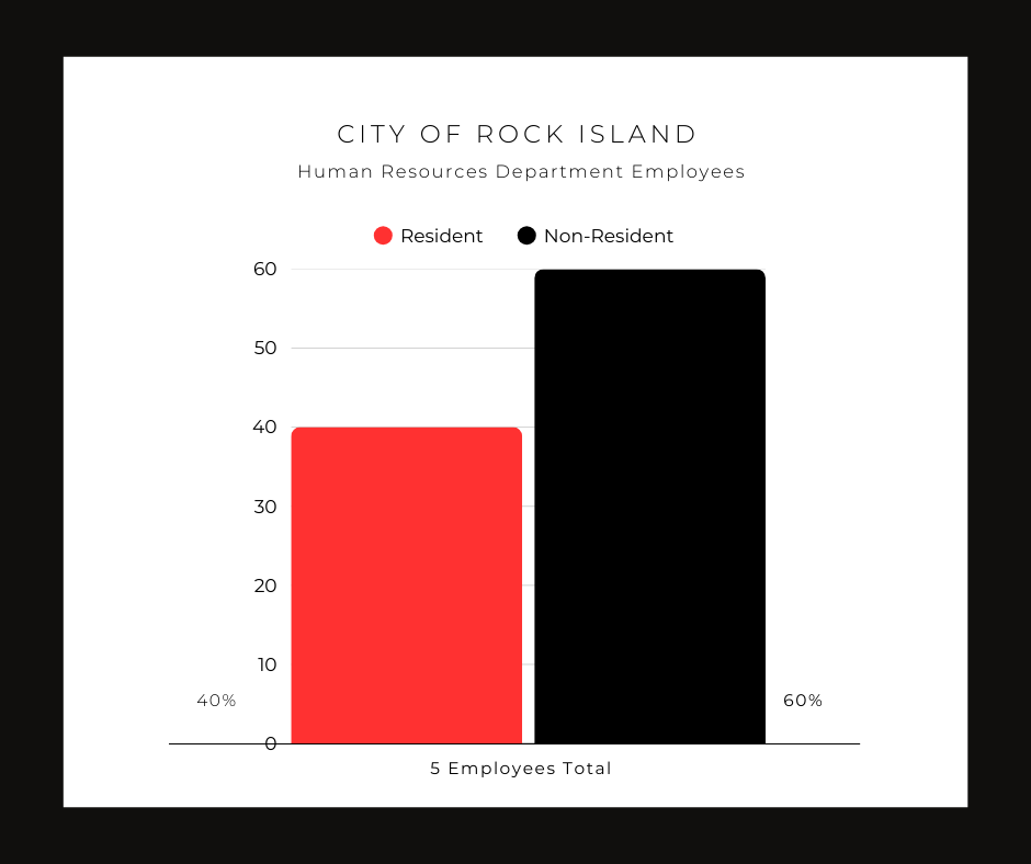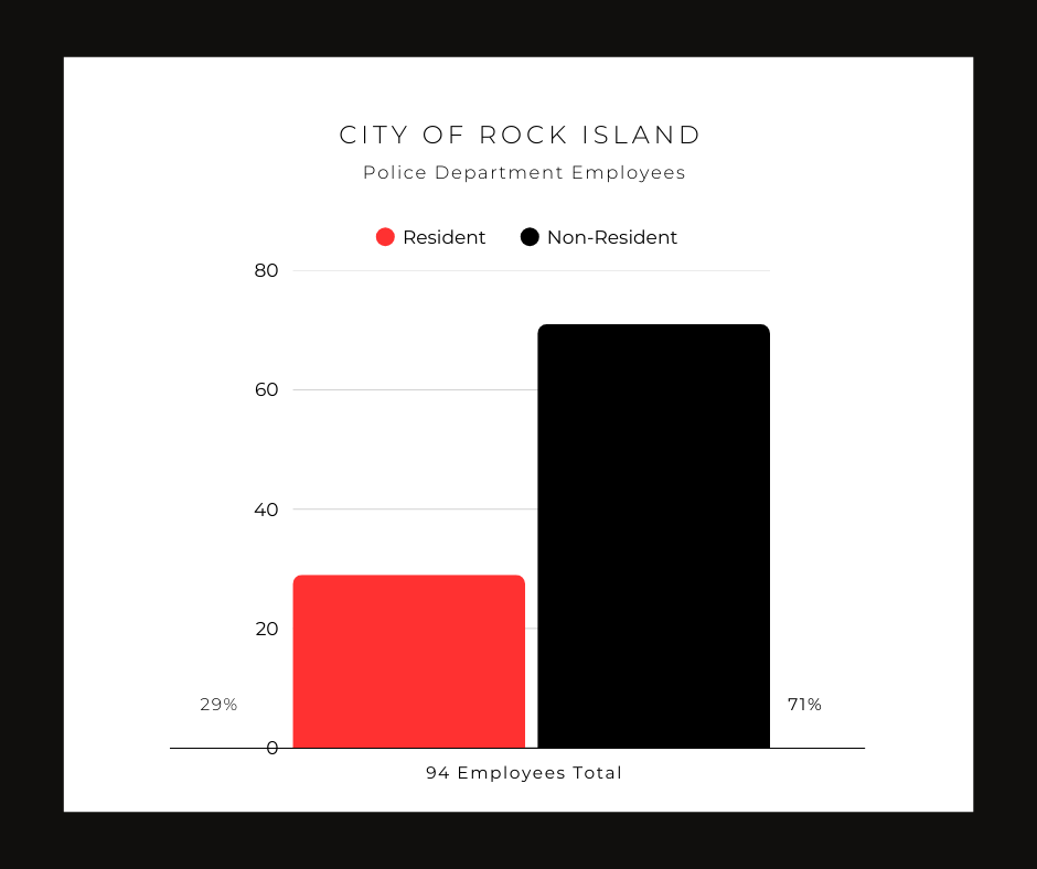 Currently, roughly 57% of overall employees live outside of Rock Island. In some departments, like police and fire, that number is ~70% of employees living outside the city. Based on the overall average of 57%, that means: